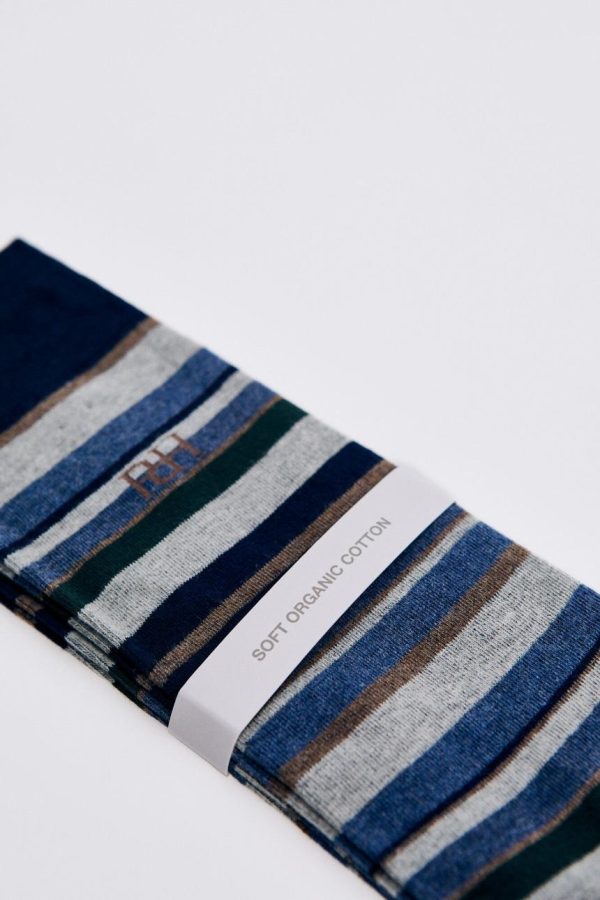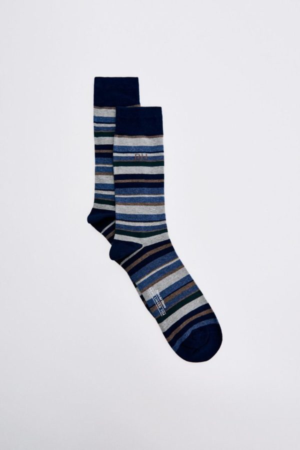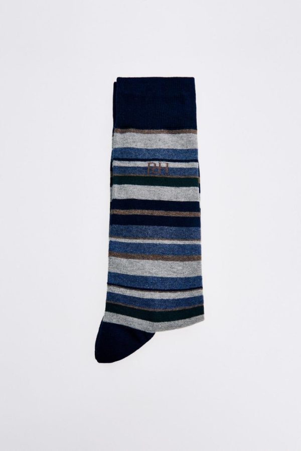 Hombre Calcetines | Pedro Del Hierro Calcetín Rayas Logo Azul