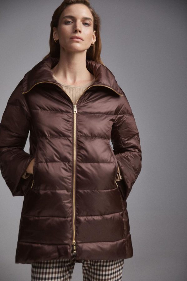 Mujer Abrigos Y Chaquetas | Pedro Del Hierro Ultralight Largo Cuello Amplio Marrón