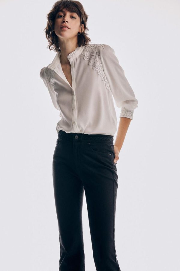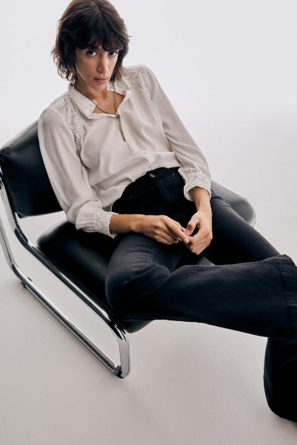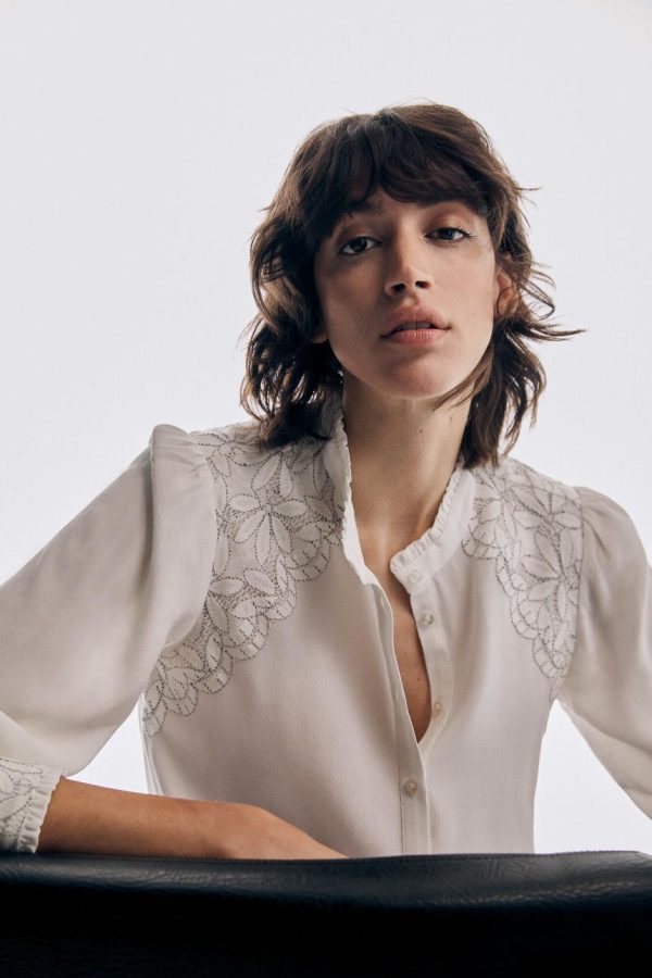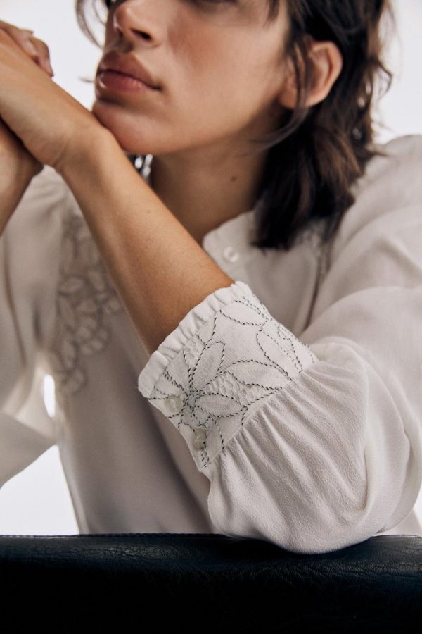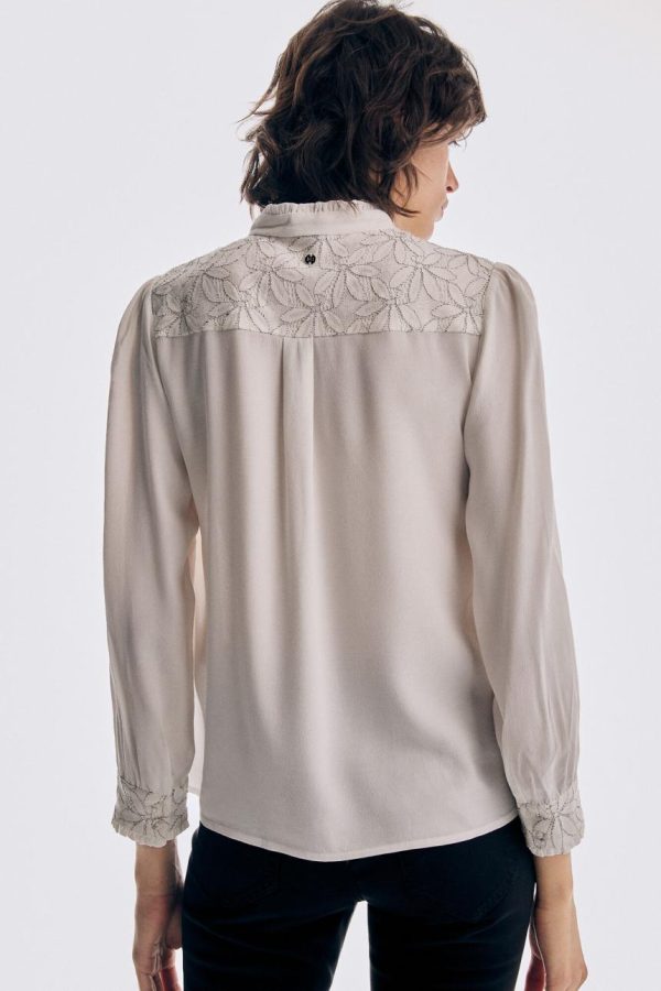Mujer Blusas | Pedro Del Hierro Blusa Eco Vero Con Canesú De Encaje Beige