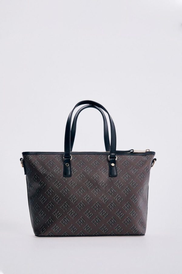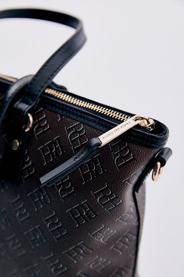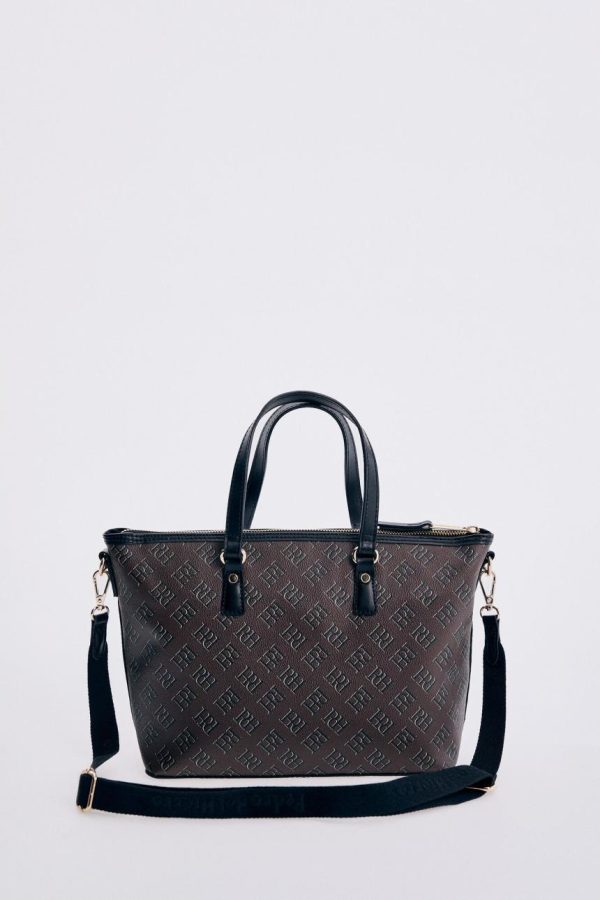 Mujer Bolsos | Pedro Del Hierro Bolso Tote Pequeño En Lona Marrón Negro quantity