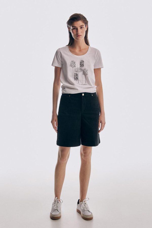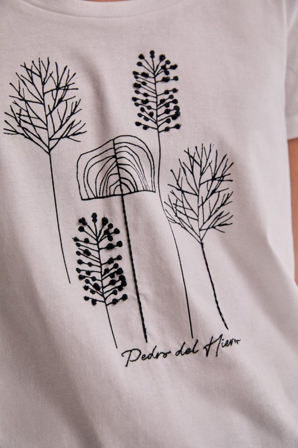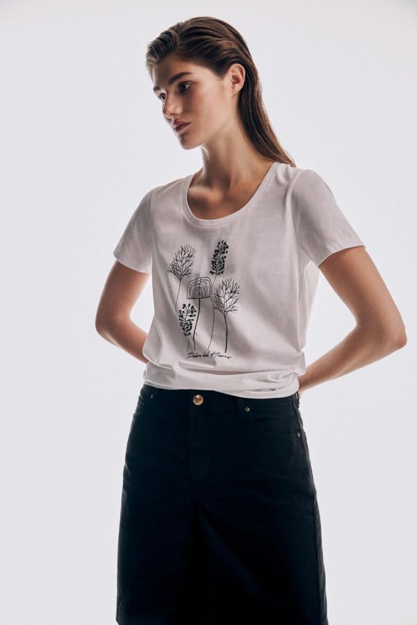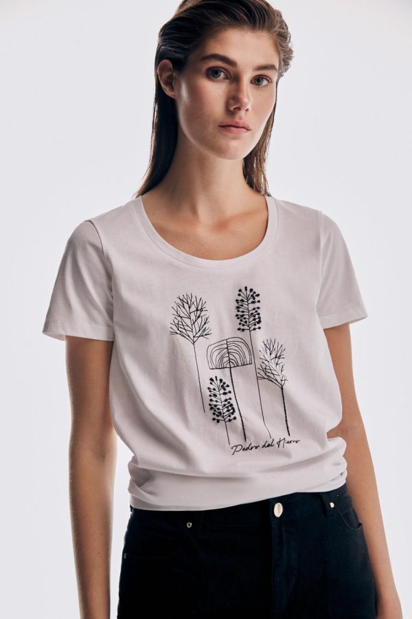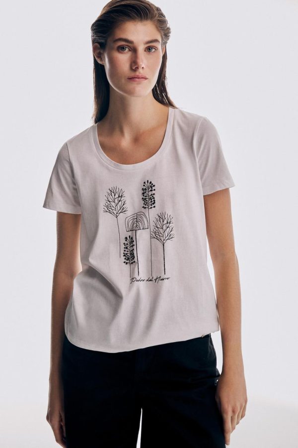 Mujer Camisetas | Pedro Del Hierro Camiseta Manga Corta Cuello Amplio Bordado Logo Beige