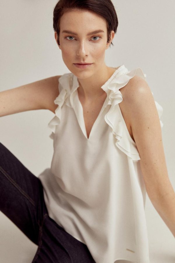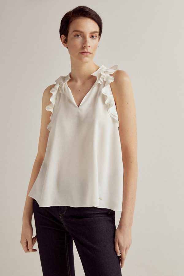 Mujer Camisetas | Pedro Del Hierro Top Con Volantes Beige