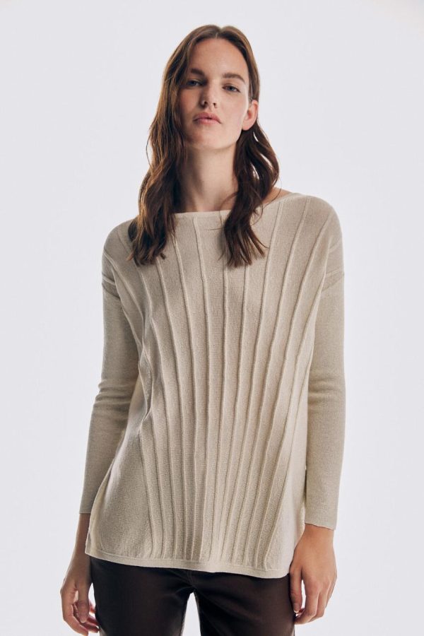 Mujer Jerséis Y Cárdigans | Pedro Del Hierro Chaleco Punto Cuello Cisne Y Aberturas Laterales Beige