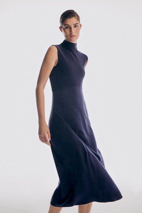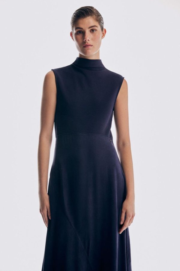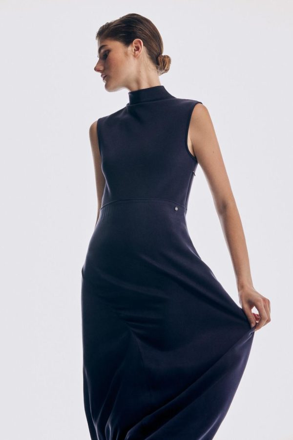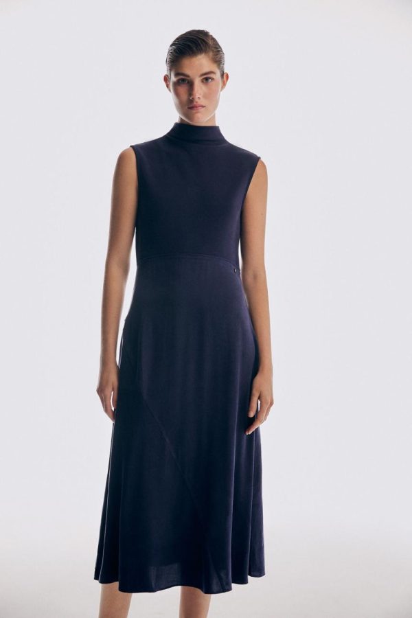 Mujer Vestidos Y Monos | Pedro Del Hierro Vestido Cuello Alto Tejidos Combinados Azul